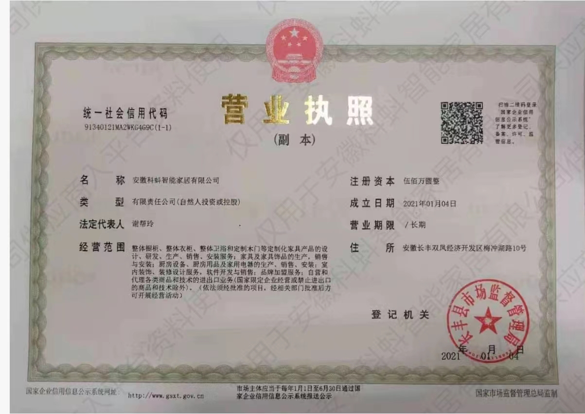 安徽科蚪智能家居有限公司坐落于安徽省合肥市雙鳳開發區。公司推崇全屋定制家居理念,以用戶為出發點,結合當下潮流風尚,主打輕奢智能全屋定制的創導品牌,專注于輕奢智能全屋定制家居的研發、設計、生產、銷售、服務。