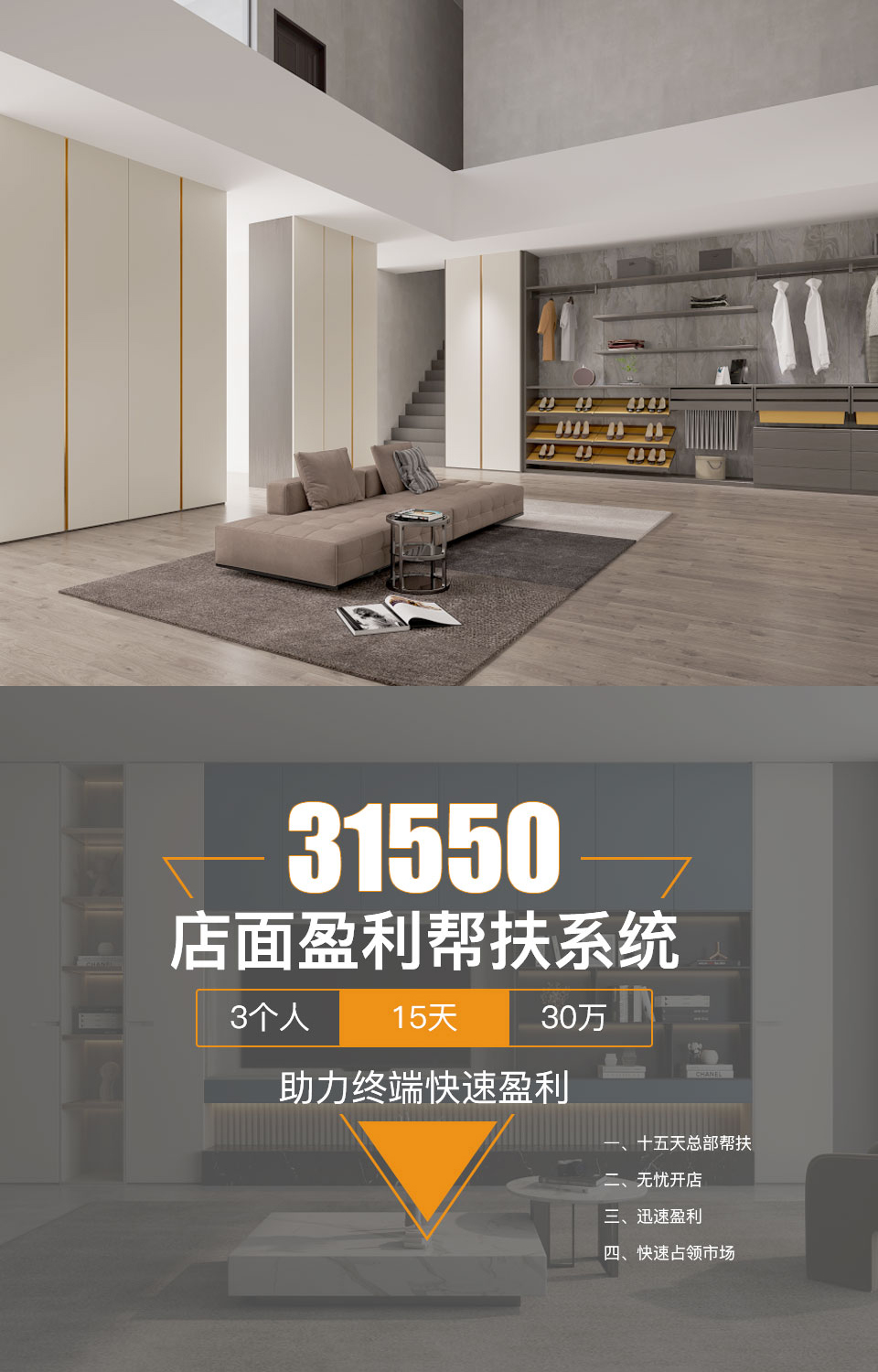 每月駐店指導店面運營及輔助簽單;銷售、設計、下單、生產、售后全方位保姆式服務